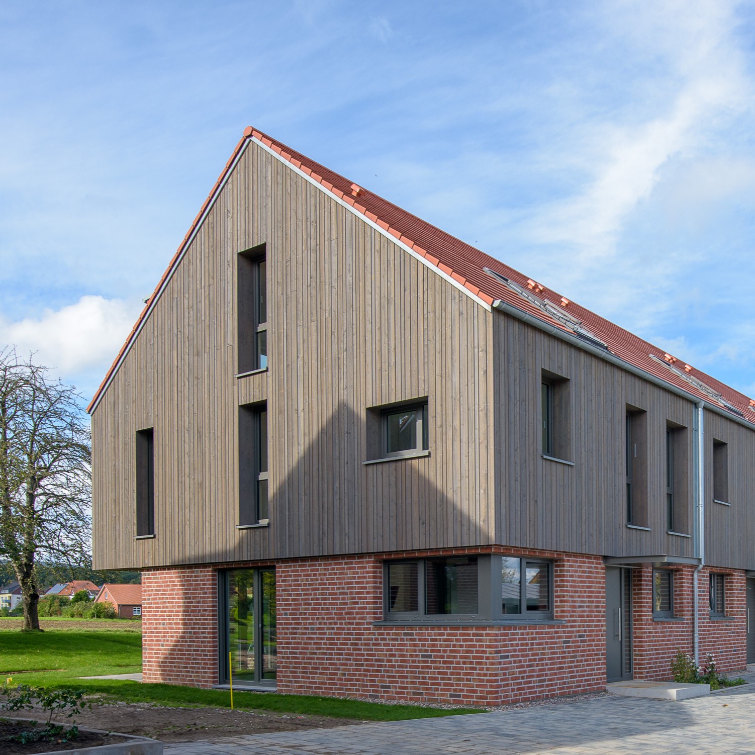 Im Wennigser Ortsteil Argestorf wurden zweimal vier gereihte Stadthäuser als Alternative zum freistehendem Einfamilienhaus im dörflichem Umfeld und mit freiem Blick auf den Deister gebaut.